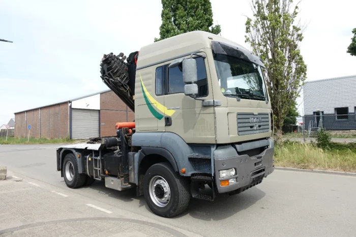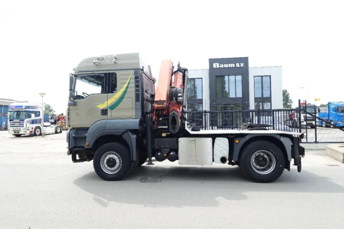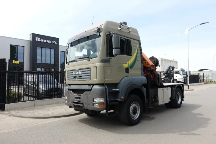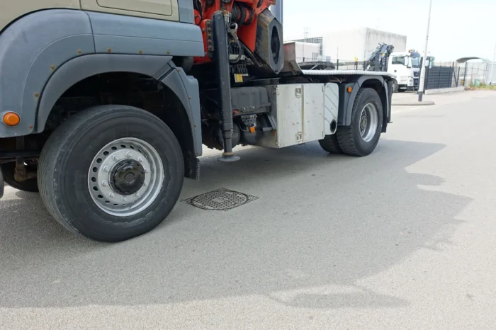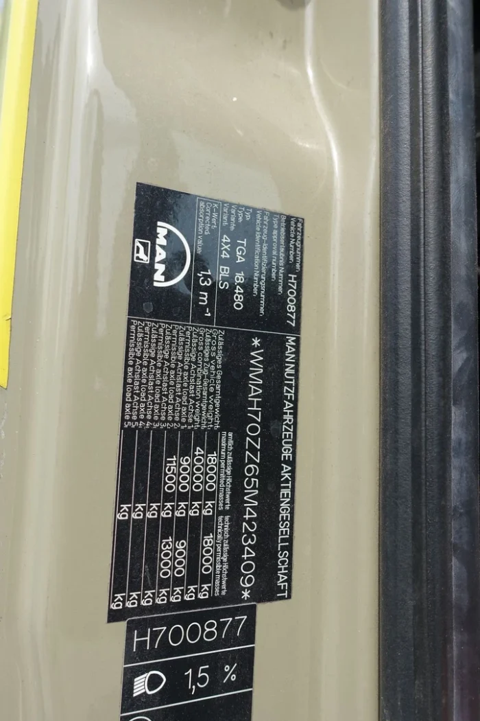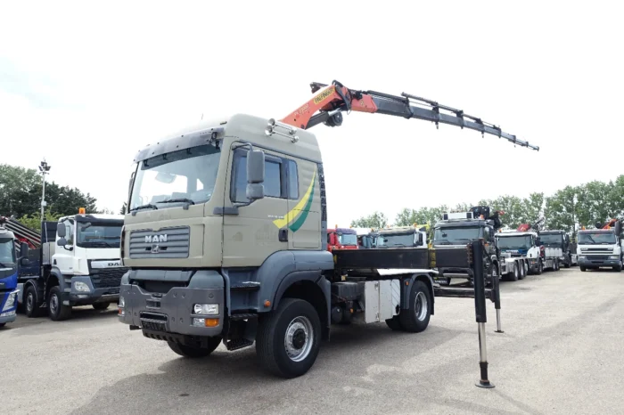 Ce MAN TGA 18.480 4×4 est un véhicule robuste et polyvalent, parfaitement adapté aux travaux de levage, de transport et de manutention exigeants.