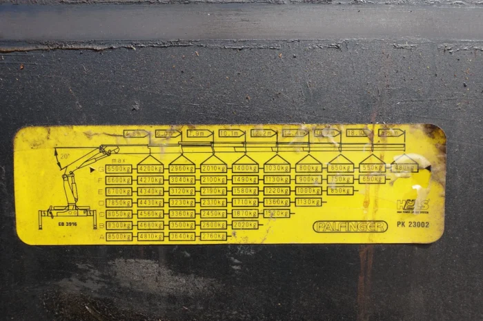 Sa grue Palfinger PK 23002 offre une capacité de 23 TM avec une précision remarquable, tandis que la boîte manuelle assure une maîtrise totale des performances moteur.